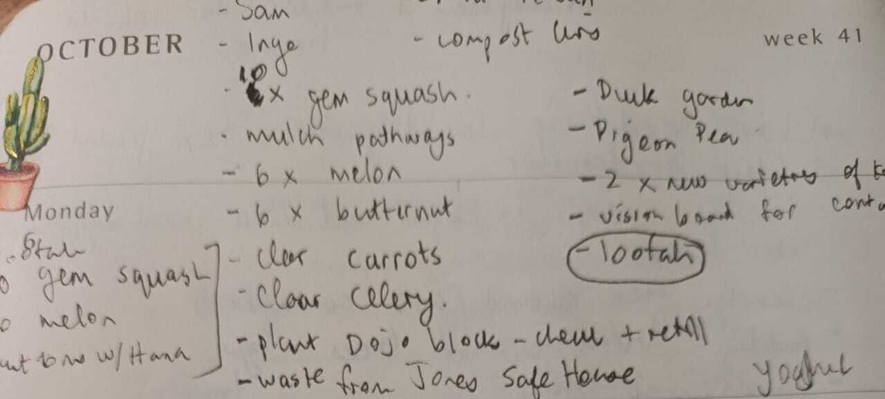 So what is left is considering the systems with discrete tasks that change frequently: composting, seed planting, weeding, clearing, seedling planting. This is where lists can be helpful.