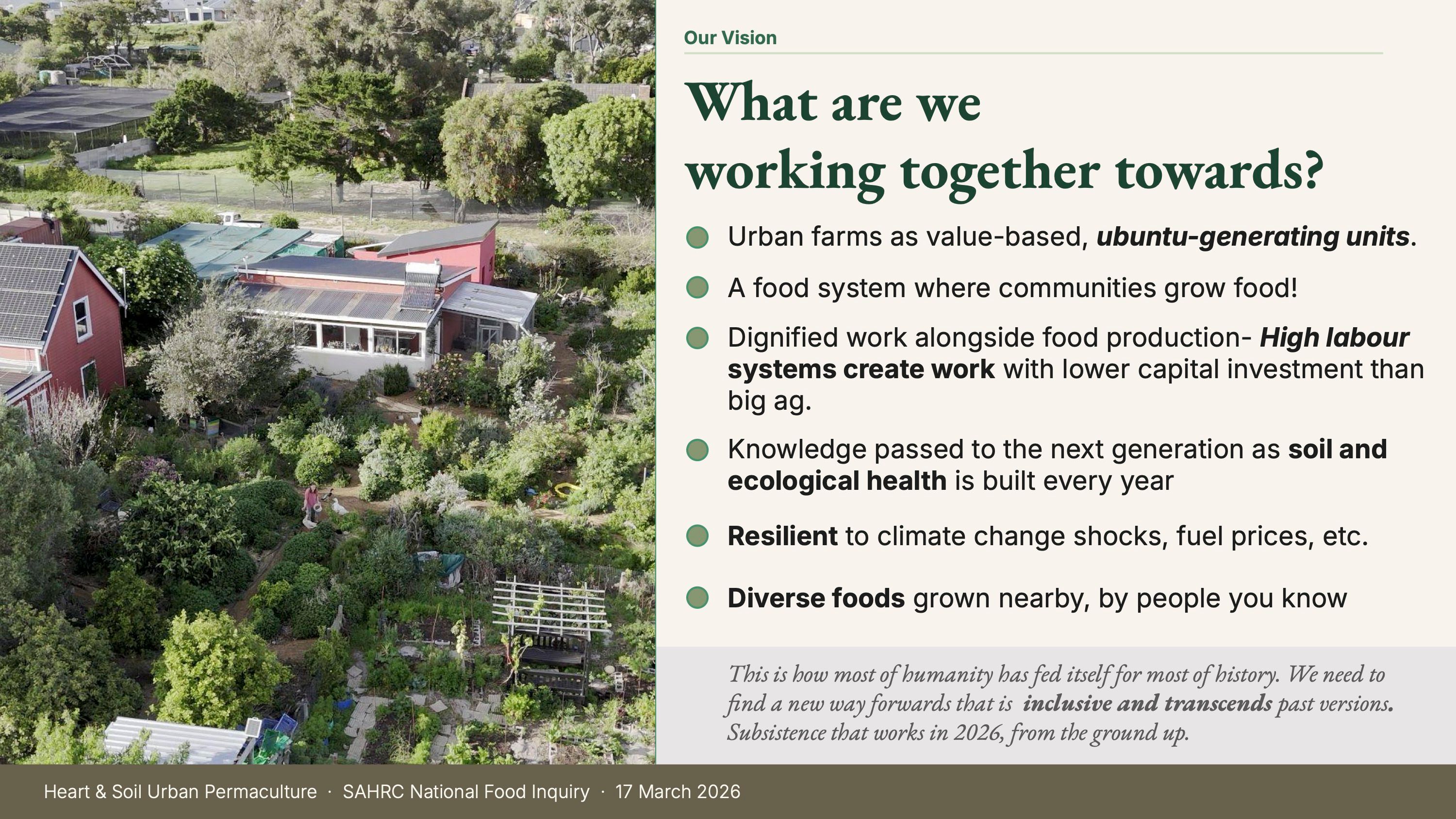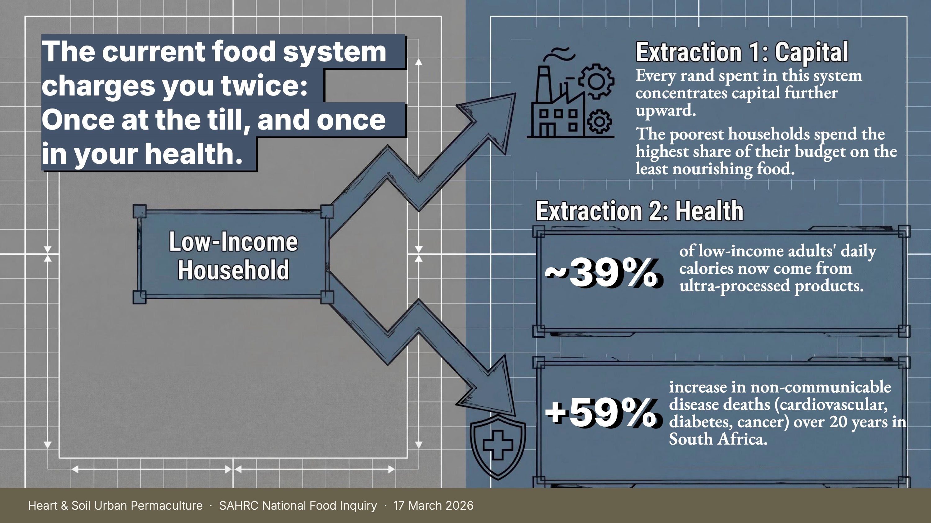 The SAHRC's National Inquiry into South Africa's Food Systems is, as far as I know, the most serious official process this country has ever initiated on food. The commissioners were compassionate, rigorous and engaged despite a series of incredibly long days. They asked every presenter hard questions. They kept pressing ministers who were avoiding the hearing, until they finally showed up. And as Professor May highlighted, in some ways the food systems works perfectly, just not for the people who need it most.
